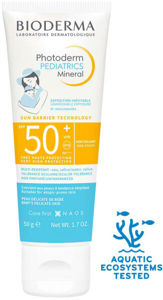 Nagyon magas ásványi fényvédelem 0-36 hónapos korig. Az elkerülhetetlen expozíciókhoz. SUN BARRIER TECHNOLOGY: csúcstechnológiás fényvédelem, amelyet kifejezetten a gyermekek érzékeny bőrére terveztek. Fényszűrők, antioxidáns hatású E-vitamin és sárgabarackmag olaj kombinációja biomimetikus lipidekkel, amely védi és erősíti a bőr barrier (védő) funkcióját a napp