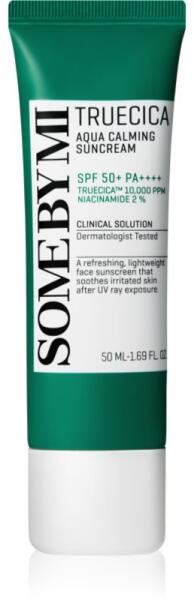 Some By Mi Truecica Aqua Calming, 50 ml, Napsugárzás elleni védekezés nőknek, Védje bőrét a napsugárzás okozta idő előtti öregedéstől és egyéb károsodásoktól. Az arc finom bőre sokkal érzékenyebb, mint a test többi részén lévő bőr, és egész évben ki van téve a napsugaraknak – ezért fontos, hogy nem becsülje alá a védelmét. A kiváló Some By Mi Truecica Aqua