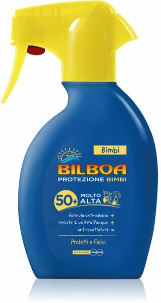 Bilboa Bimbi, 250 ml, Napvédő kozmetikumok gyermekeknek gyermekeknek, A gyermekek bőre rendkívül érzékeny a napsugarakra, ezért fontos, hogy kellően hatékony és megbízható védelmet biztosítsunk számukra. A minőségi Bilboa Bimbi fényvédő gondoskodik erről. A hatékony UV-szűrők kombinációja megakadályozza a káros napfény okozta irritációt, leégést vagy egyéb bőrk