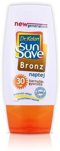 SUNSAVE F30 NAPTEJ BRONZ 100ML Termék leírása: Való di újdonság, flakonba zárt tudomány, hogy akkor is gyorsan barna legyen a napon, ha kevés ideje van. Bőre rövidebb idő alatt lesz természetes módon barnább SPF 10 fényvédelem mellett. A különleges összetételű naptej növényi komponense a bőr természetes barnulási folyamatát gyorsítja, miközben erős védelmet nyújt a