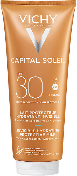 Hidratáló naptej az egész család számára. A CAPITAL SOLEIL BEACH PROTECT formulákat a vízpartra tervezték, hogy segítsenek megóvni a bőr naptőkéjét. A fényvédelem mellett segítenek a bőr hidratálásában és kellemes használatot biztosítanak. Ered