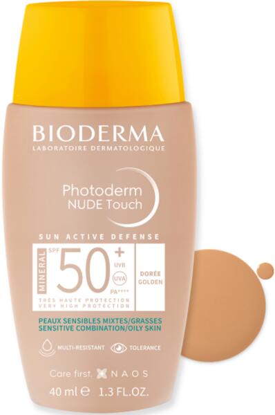 Bőrtökéletesítő fényvédő fizikai szűrőkkel golden 03 árnyalatban, magas szintű UVA/UVB védelmet biztosító színezett fényvédő kombinált, zsíros bőrre kifejlesztve. A Bioderma Photoderm NUDE Touch magas szintű UVA/UVB védelmet biztosító színezett fényvédő kombinált, zsíros bőrre kifejlesztve. A forradalmi „Liquid-to-powder technológiának köszönhetően akár 8