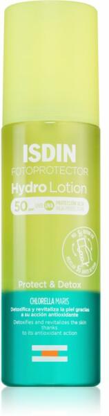 ISDIN HydroLotion Kétfázisú fényvédő krémKétfázisú fényvédő hidratáló és azonnal beszívódó hatással. Chlorella maris-szal, amely antioxidáns hatásának köszönhetően méregteleníti és revitalizálja a bőrt. Magas UVB/UVA védelem SPF50. Fejlett kétfázisú formulája kettős előnyt kínál:1. Védelem - Magas UVB/UVA SPF 50 bőrvédelem2. Méregtelenítés: A Chlorella