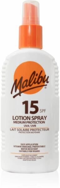 Malibu Lotion Spray Medium Protection, 200 ml, Napsugárzás elleni védekezés nőknek, Védje bőrét a napégéstől, az idő előtti öregedéstől és a napfény okozta egyéb károsodásoktól. A rendkívüli Malibu fényvédő hatékony védőpajzsot képez az UV-sugarakkal szemben, segít megelőzni nemcsak a leégést vagy a pigmentfoltokat, hanem a bőr rugalmasságának csökkenését,