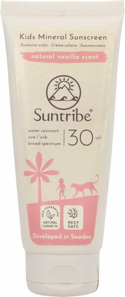 Suntribe Kids Mineral Sunscreen, 100 ml, Napvédő kozmetikumok gyermekeknek gyermekeknek, Az ásványi UV szűrőt tartalmazó Suntribe Kids Mineral Sunscreen készítmény hatékony napsugárzás elleni védelmet nyújt a bőnek. Tulajdonságok: hidratálja a baba bőrét textúrája vízálló arcra és testre is használható kíméli a babák érzékeny bőrét a kémiai szűrőkkel ellentét