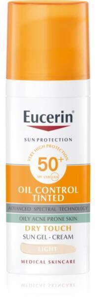 Ideális zsíros, aknéra hajlamos bőrre. Az Eucerin Sun Oil Control színezett napozó krém-gél arcra FF50+ a Szélesspektrumú Fényvédelmi Technológia, valamint a HEVIS-fény elleni védelem segítségével nagyon magas szintű UV-védelemmel óvja a zsíros, aknéra hajlamos bőrt a napfény káros hatásaitól. 12 órán át védi a bőrt a zsírosodás és a csillogás ellen, emellett 2