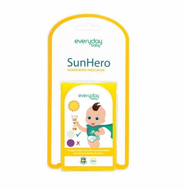 Élvezd a tengerparti, vagy strandi életet gyermekeddel és a Sunhero-val! A fényvédő jelző megmutatja, mikor van szükség több naptejre azáltal, hogy megváltoztatja a színét. Illeszd a fényvédő jelzőt a kicsi napfénynek legjobban kitett testrészéhez, lehetőleg az egyik vállára. Ha lila színű a jelzés, azt jelenti, hogy több naptejet kell alkalmazni, ha fehér színt jelez