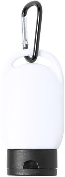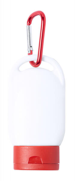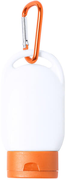 Naptej műanyag tubusban, színben hozzáillő kupakkal és karabinerrel, SPF30 fényvédelemmel ellátva. 30 ml.