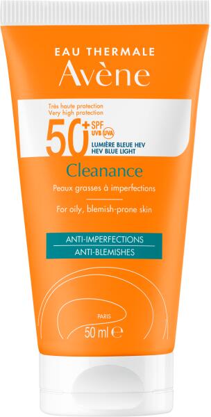 Napvédő krém Avene Cleanance SPF 50+ TRIASORB, pattanásos bőrre, 50 ml A Cleanance Sun Cream SPF 50+ rendkívül széles spektrumú fényvédelmet kínál. Ez a napkrém ideális a hibás, zsíros bőr napi védelmére. A Monolaurin nevű aktív faggyúcsökkentő összetevővel jelentősen csökkenti a pattanásokat és segít megelőzni a napsugárzás okozta jelek megjelenését. A Cleanan