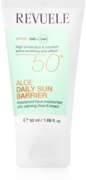 Revuele Daily Sun Barrier Aloe, 50 ml, Napsugárzás elleni védekezés nőknek, Védje bőrét a napsugárzás okozta idő előtti öregedéstől és egyéb károsodásoktól. Az arc finom bőre sokkal érzékenyebb, mint a test többi részén lévő bőr, és egész évben ki van téve a napsugaraknak – ezért fontos, hogy nem becsülje alá a védelmét. A kiváló Revuele Daily Sun Barrier