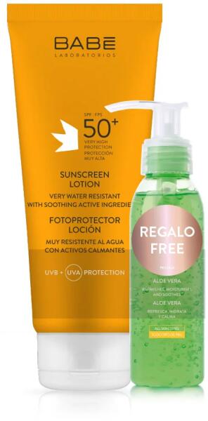 Babé fényvédő tej SPF50+ (200ml) Nagyon magas fényvédelmet biztosító naptej, mely egyenletesen eloszlatható a bőrön. Minden bőrtípusra, még érzékeny bőrre is. Gyorsan beszívódik (nem hagy fehér foltokat) Széles spektrumú UVA-UVB védelem Bőrnyugtató és antioxidáns hatóanyagok, melyek segítenek megóvni a bőrt a napsugárzás káros hatásaitól Vízálló Hatóanyagok: