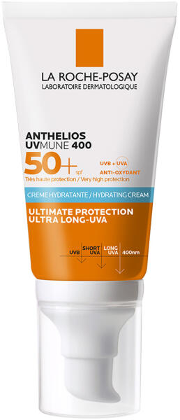 ANTHELIOS UVMUNE 400 NAPVÉDÕ KRÉM SPF50+: MEXORYL400-zal, a La Roche-Posay nagyon magas UV-szűrője a legalattosabb UV-sugarak ellen: az EXTRA HOSSZÚ HULLÁMÚ UVA-SUGARAK ellen*. Extra erős védelem (UVB- + UVA- + EXTRA HOSSZÚ HULLÁMÚ UVA-SUGÁRZÁS ELLEN) a mély sejtkárosodások ellen. Érzékeny, reaktív és intoleráns bőrön tesztelve. Minden bőrtípusra, minden fototípusra alk