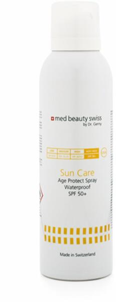 Med Beauty Swiss sun care age protect spray spf50 + vízálló 150ml Igényes bőr ápolása és védelme a suncare age protect spray spf 50 egész nap megvédi és gondoskodik a bőrről, és célzott nedvességet biztosít kenés nélkül. Az innovatív, könnyű, alkoholmentes készítmény B5-vitamint, Q10 koenzimet, cinket és Tinosorb-ot (UV-szűrő) tartalmazó készítmény megbízhatóan