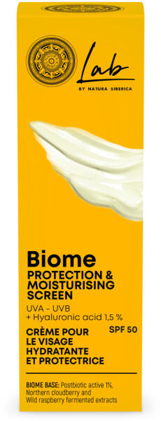 Lab biome hidratáló fényvédő arckrém SPF50, 30 ml - Tökéletes hidratáltság érzetet biztosít a bőrnek - Nagyfokú védelmet nyújt az UV-sugarak ellen- Az UVA- és UVB-szűrők biztonságos pajzsot nyújtanak a bőrnek, visszaverik a napsugarakat és blokkolják káros hatásukat- Alacsony és magas molekulasúlyú hialuronsavat tartalmaz, mely erőteljesen hidratál és segít meggát