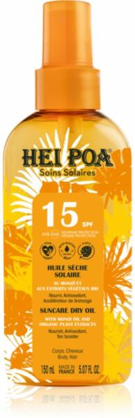 Hei Poa Tahiti Monoi Oil, 150 ml, Napsugárzás elleni védekezés nőknek, Védje bőrét a napégéstől, az idő előtti öregedéstől és a napfény okozta egyéb károsodásoktól. A rendkívüli Hei Poa Tahiti Monoi Oil fényvédő hatékony védőpajzsot képez az UV-sugarakkal szemben, segít megelőzni nemcsak a leégést vagy a pigmentfoltokat, hanem a bőr rugalmasságának csökkenés