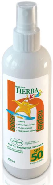 Az SPF (Sun Protection Factor) 50 a naptej magas védelmi faktorát jelzi az UVB sugarak ellen. Ez segít megakadályozni a gyermekek bőrégését és védi őket a nap okozta káros hatásoktól. A Herba Kids SPF 50 naptej spray kellemes és könnyű textúrával rendelkezik, amely gyorsan felszívódik a bőrbe anélkül, hogy ragacsos vagy zsíros maradna.