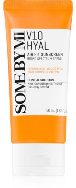 Some By Mi V10 Hyal Air Fit Sunscreen, 50 ml, Napsugárzás elleni védekezés nőknek, Védje bőrét a napsugárzás okozta idő előtti öregedéstől és egyéb károsodásoktól. Az arc finom bőre sokkal érzékenyebb, mint a test többi részén lévő bőr, és egész évben ki van téve a napsugaraknak – ezért fontos, hogy nem becsülje alá a védelmét. A kiváló Some By Mi V10 Hyal