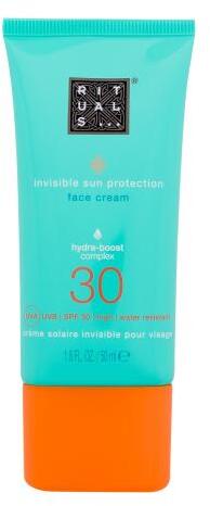 Élvezze a napfényt aggodalom nélkül a Rituals The Ritual Of Karma Invisible Sun Protection Face Cream segítségével. Ez a napozókrém magas fényvédelmet nyújt az arcbőrnek az UVA- és UVB-sugarak ellen, ugyanakkor könnyen és gyorsan felszívódó formulájának köszönhetően hidratálja, rugalmassá teszi a bőrt anélkül, hogy növelné a nem kívánt fényét.