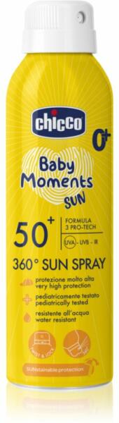 Chicco Baby Moments Sun, 150 ml, Napvédő kozmetikumok gyermekeknek gyermekeknek, Napon tartózkodás után a készítmény tökéletesen ápolja a baba bőrét. Tulajdonságok: megvédi a bőrt leégéstől textúrája vízálló UVA és UVB sugárzástól is védi a bőrt arcra és testre is használható bőr- és környezetkímélő termék könnyen szétkenhető és nem hagy zsíros filmet a