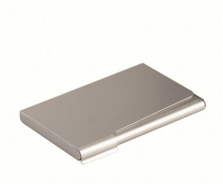 Névjegykártyatartó tárca, fém, 20 db-os, DURABLE, matt ezüst (DB241523) Elegáns, alumínium névjegykártyatartó, matt ezüst felülettel. -20 db névjegy tárolására alkalmas -max. 90 x 55 mm-es névjegyekhez -külső méretek: 125 x 67 x 5 mm (szé x ma x mé) -matt ezüst színű -alumínium Itt megtekinthető és letölthető a termékadatlap Itt megtekinthető és letölthető a kö