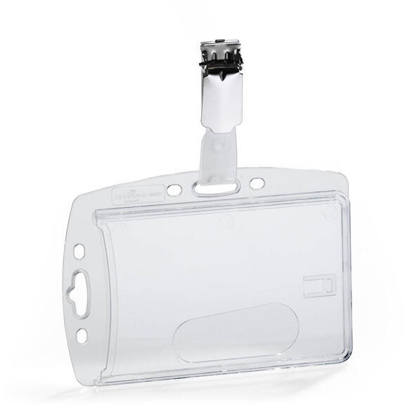 Durable ENCLOSED csipesszel 1 kártyához biztonságikártya tartó Zárt kivitelű biztonsági kártyatartó 1 db kártyához Víztiszta anyagból az optimális olvashatóság és a vonalkódok könnyű beolvasása érdekében Praktikus kivágással, mely lehetővé teszi a kártya könnyű kivételét Klippel rögzíthető A kártyatartó tetszés szerint álló vagy fekvő formátumban is haszn