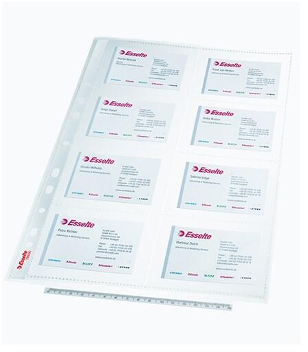 8 részes lefűzhető tasak névjegykártyák számára. Az univerzális lyukasztású lefűzőcsíknak köszönhetően bármilyen iratrendezőben, gyűrűskönyvben használható. 16 névjegykártya tárolásához. Víztiszta, 105 mikron vastag PP alapanyag. A 11 lefűzőlyuknak köszönhetően bármilyen iratrendezőben, gyűrűskönyvben használható. A4 mérethez.