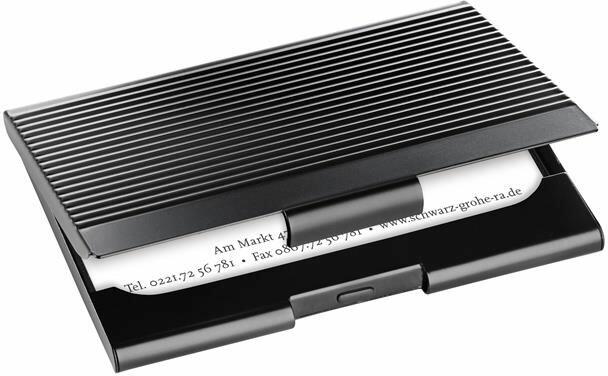 fekete 20 db 91x56 mm-es kártya tárolásáraCsomagolási egység: 1 db Alcsoport névjegykártya tartók Méret 91x56 mm Anyag fém Zsebbel rendelkezik Nem Forgatható Nem Regiszteres Nem Kapacitás 20 db Biológiai úton lebomló Nem Újrahasznosított anyagból Nem Környezetbarát gyártás Nem