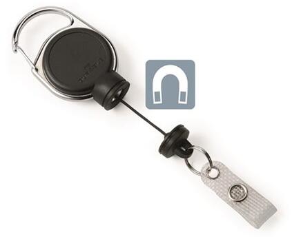 Kihúzható beléptetőkártyatartó nehéz kártyákhoz, vagy kulcsokhoz. A mágneses záródás lehetővé teszi a termék 300 g-ig történő terhelését. Fém rögzítéssel Kis kulcskarikával és megerősített patentos tartóval Hossz: 60 cm A beépített mágnes befolyásolhatja a mágneskártyák kódjait.
