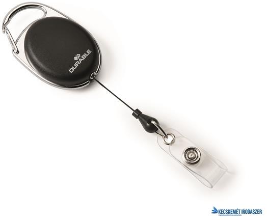 Ovális kihúzható kártyatartó, hogy a biztonsági kártya mindig kéznél legyen. -karabinerrel rögzíthető ruházathoz, táskához -a kártyatartó patentos füllel rögzíthető hozzá