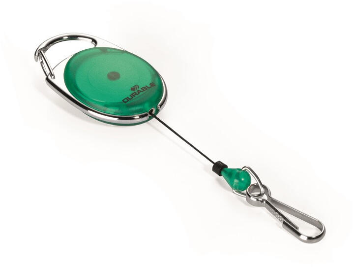 Ovális, kihúzható névkitűzőtartó, fém klippel, széles színválasztékban. A biztonsági kártya mindig kéznél van. Minden lyukasztott DURABLE névtartóhoz használható. Karabineres rögzítéssel. Katalóguskód: 27218