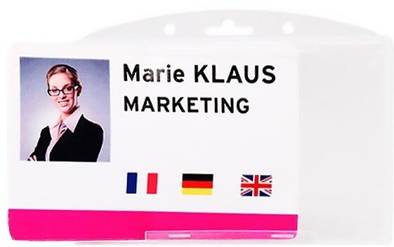 Jelvénytartó egy vagy két nyitott rekesszel. A jelvénytartó függőlegesen vagy vízszintesen is hordható. Biztonsági információi közvetlenül a fedetlen oldalról olvashatók. Tekercs (80 cm-es visszahúzható zsinór) és övcsipesz. A jelvényt műanyag kapocs segítségével rögzítik.