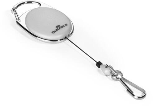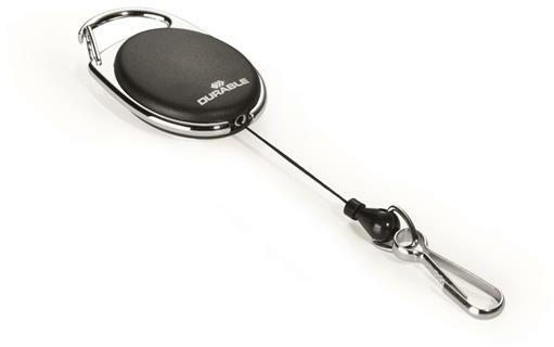 Azonosítókártya-tartó, kihúzható, karabineres, DURABLE "Style", fekete - DB832701 - Azonosítókártyák és tartozékaik - Ovális kihúzható kártyatartó, hogy a biztonsági kártya mindig kéznél legyen. -karabinerrel rögzíthető ruházathoz, táskához -a kártyatartó