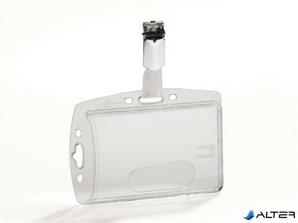 Víztiszta azonosító-, és biztonságikártya-tartó forgatható csíptetővel. -zárt kivitelű biztonsági kártyatartó -1 db kártyához -tetszés szerint álló vagy fekvő formátumban is használható -víztiszta anyagból az optimális olvashatóság és a vonalkódok könnyű beolvasása érdekében -praktikus kivágással, mely lehetővé teszi a kártya könnyű kivételét -kihúzhat