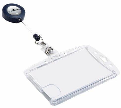 Azonosítókártya-tartó, kihúzható, akril, zárt, DURABLE - DB801219 - Azonosítókártyák és tartozékaik - Víztiszta azonosító-, és biztonságikártya-tartó kihúzható karabinerrel. -zárt kivitelű biztonsági kártyatartó -1 db kártyához -tetszés szerint álló vagy