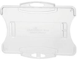 Nyitott kivitelű biztonsági kártyatartó 1 db kártyához. Klippel, kihúzható tartóval, lánccal vagy textilszalaggal kombinálható. A kártyatartó tetszés szerint álló vagy fekvő formátumban is használható. Belső méret: 54 x 87 mm (ma x szé).