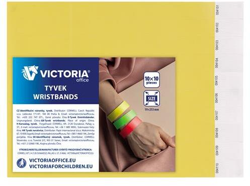 A több színben is kapható Victoria Office karszalag, mely ideális megoldás belépése való jogosultság ellenőrzésére és rendezvények látogatószámának nyomon követésére. Kiváló minőségű, könnyű, magas szakítószilárdságú TYVEK alapanyagú, mely rendkívül tartós, vízálló és kényelmes viselet. -méretei: 253 x 19 mm (ho x szé) -feliratozható felület hosszúsá