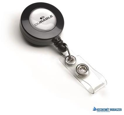 Kör alakú kihúzható kártyatartó, hogy a biztonsági kártya mindig kéznél legyen. -fém csattal rögzíthető ruházathoz, táskához -a kártyatartó patenttal rögzíthető rá -fekete...
