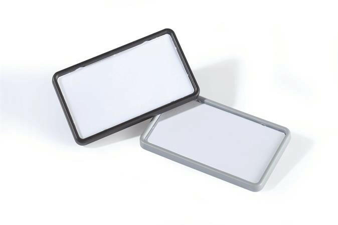 PP alapanyagból készült. Puha, hajlítható kivitelezés. Fűzőlyuka segítségével csíptethető, illetve nyakba akasztható. Méret: 59x92 mm.