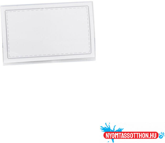 A rendezvények elmaradhatatlan kelléke. - átlátszó, kemény PVC tok - fehér betétlappal - fém csiptető, biztosítótűvel kiegészítve - magasság: 54 mm - szélesség: 90 mm - formátum fekvő