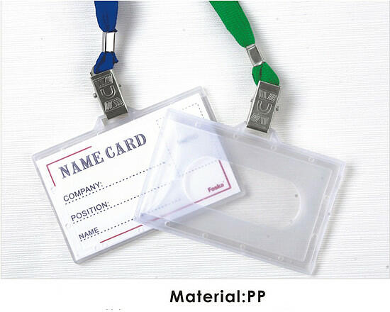 PP műanyagból készült névtábla tartó. Színes nyakba akasztó szalaggal. Belső sablon papírral. Belépő- és vendégkártya tartónak is kiváló. Méret: 92 x59 mm.