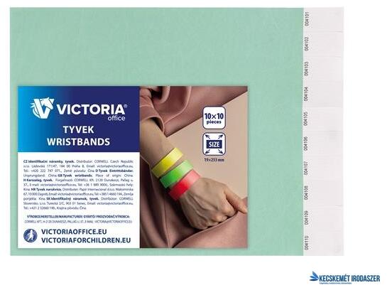 A több színben is kapható Victoria Office karszalag, mely ideális megoldás belépése való jogosultság ellenőrzésére és rendezvények látogatószámának nyomon követésére. Kiváló minőségű, könnyű, magas szakítószilárdságú TYVEK alapanyagú, mely rendkívül tartós, vízálló és kényelmes viselet. -méretei: 253 x 19 mm (ho x szé) -feliratozható felület hosszúsá