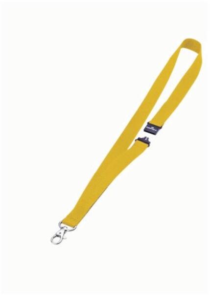 20 mm vastagságú textil szalag, melyet biztosnági zárral láttak el, ami kiold, ha a szalag beakad. Karabinerrel. Minden DURABLE névkitűzővel kombináható, amely kivágással rendelkezik. Hossz: 44 cm Katalóguskód: 24853