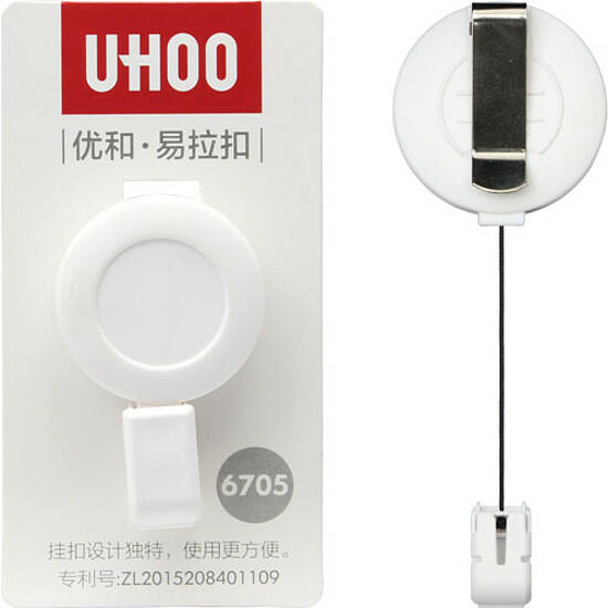 Feltekerhető mechanizmussal rendelkező, ruhára csíptethető névjegykártya tartó. Fehér színben.
