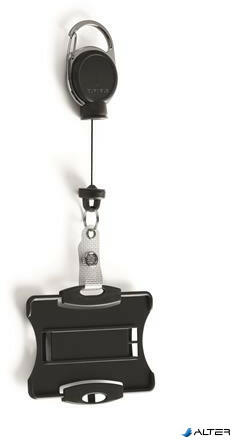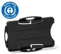 Nyitott kivitelű igazolványtartó 2 személyi igazolványhoz/biztonsági igazolványhoz Újrahasznosított Blue Angel minőségű műanyagból készült A kártyatartó álló vagy fekvő formátumban használható Kombinálható klipsszel, textilpánttal vagy visszahúzható orsóval Fekete szín Belső méretek: 54 x 87 mm