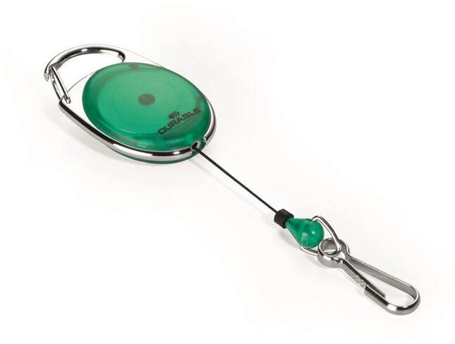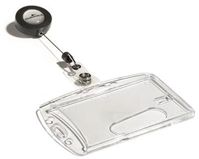 Ovális, kihúzható névkitűzőtartó, fém klippel, széles színválasztékban. A biztonsági kártya mindig kéznél van. Minden lyukasztott DURABLE névtartóhoz használható. Karabineres rögzítéssel. Katalóguskód: 27218