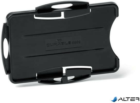 Nyitott kivitelű azonosítókártya-tartó. -nyitott kivitelű kártyatartó -2 db kártyához -álló és fekvő formátumban is használható -kombinálható csipesszel, lánccal, textilszalaggal vagy kihúzható tartóval -műanyag -fekete színű -belső méretek: 87 x 54 mm (szé x ma) -külső méretek: 95 x 70 mm (szé x ma) Itt megtekinthető és letölthető a termékadatlap. Itt megteki