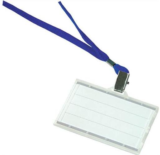 Rendezvények, oktatások elmaradhatatlan kelléke!-merev, átlátszó műanyagból készül-önzáródó csiptető, kék nyakba akasztható szalag-a szalag hossza kb 51 cm, szélessége 9 mm-hátul ovális kiszedőrés a könnyebb kezelhetőség érdekében-a névjegytartó egy üres betétlapot is tartalmaz-mérete: 88 x 54 mm