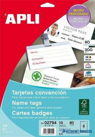 Névjegykártya, 90x55 mm, 200 g, mikroperforált, APLI - LCA2794 - Névkitűzők és tartozékaik - - a névjegykártyák könnyen leválaszthatók - fénymásológépekben, lézernyomtatókban és tintasugaras nyomtatókban használhatók - megkapta az FSC (Felelős Erdőgazdálk