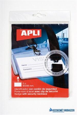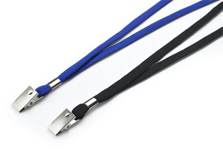 Azonosítókártya tartó krokodil csipesszel, 84 cm hosszú kék nyakba akasztóval, rugalmas polipropilénből. A hátulján lévő ovális nyílás megkönnyíti a kártya kivételét, cseréjét.