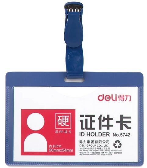 Névkitűző csiptetővel, fekvő, 90x54 mm, DELI Start, kék / átlátszó, 10db/csomag (DEL05742)